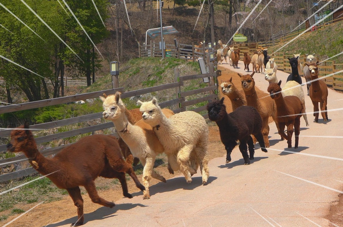 복슬복슬한 털을 날리며 힘차게 뛰어오는 모습은 귀여운 알파카들의 반전 매력을 보여주며 어디에서도 볼 수 없는 멋진 장관이 펼쳐진다.