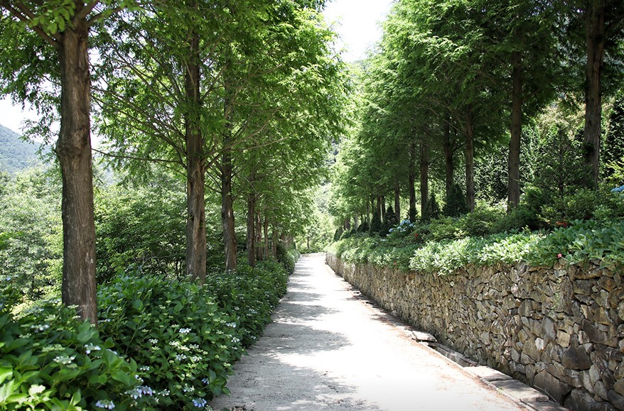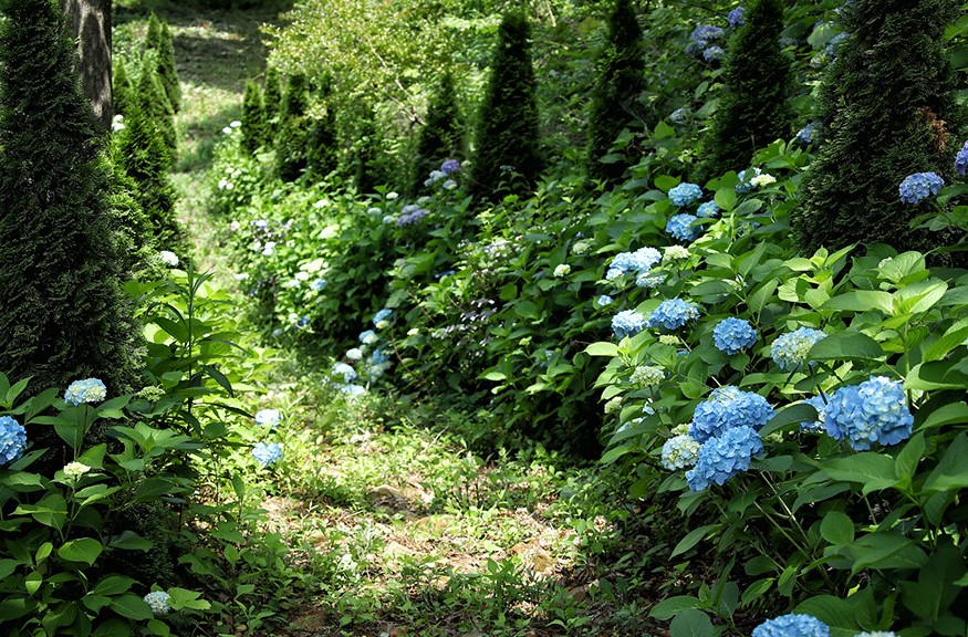 15년 동안 16만 평의 토지에 30만 주가 넘는 수국과 다양한 종류의 나무들을 심고 가꾸어 만든 아름다운 정원이다.