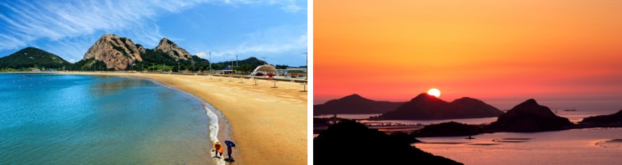 주변의 물이 얕고 모래가 깨끗한 해수욕장이다.