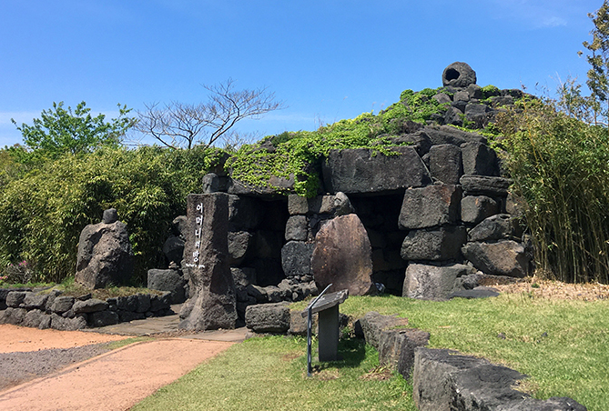 이 용암석은 바다보다 깊고 산보다 높은 모성애의 화신이 된 설문대할머니가 사랑하는 아들을 안고 서 있는 듯한 모습으로, 특히 벽에 비친 그림자가 일품입니다.