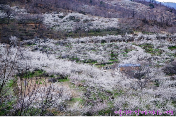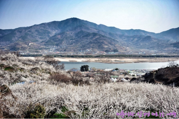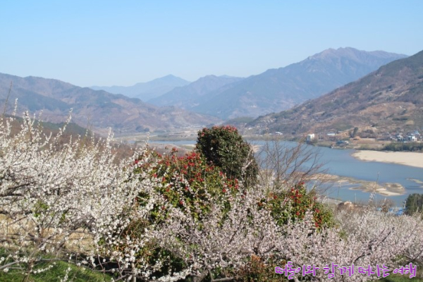 산아래 둔덕과 산자락에 심어진 매화나무에서 꽃이 만발하면 섬진강 주변은 온통 하얀 매화꽃이 구름과 향기에 휩싸입니다.