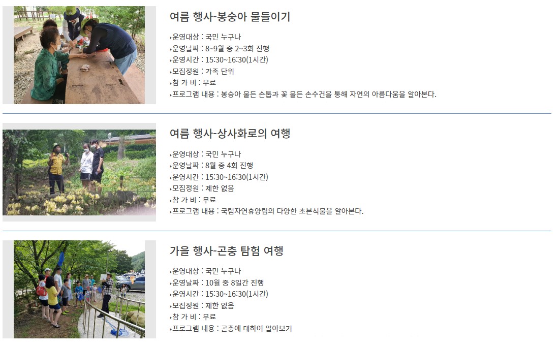 계절에 맞게 다양한 체험 프로그램이 있으니 유익한 정보도 얻고 체험을 즐겨보면 좋을 것 같다.