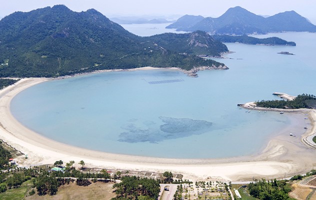 해안 2km에 달하는 모래사장은 경사가 완만하여 위험이 적은 곳이다. 타원형의 길고 넓은 백사장에 군데군데 모래성이 쌓아진 것이 특징이며, 이곳에 서보면 산과 바다 풍경이 그림을 감상하는 것 같은 환상에 젖기도 한다.