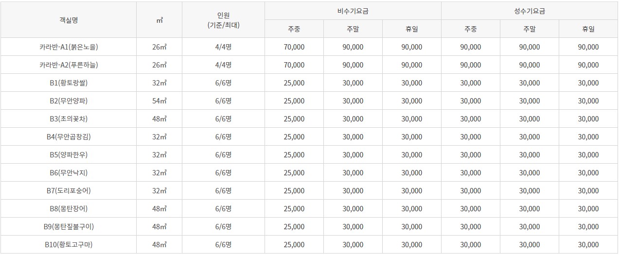 이용요금은 카라반 70,000원 ~ 90,000원 , 캠핑 25,000원 ~ 30,000원입니다.