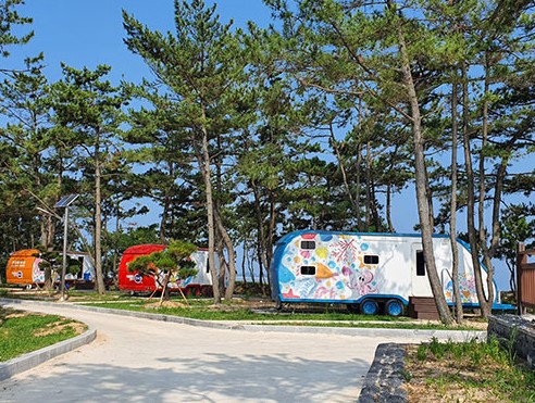 나무숲 사이와 바다가 바로 보이는 예쁜 카라반을 경험하실 수 있습니다.