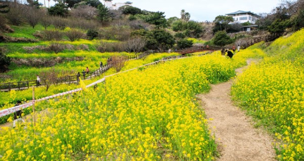 입장료가 부과되는 다른 유채꽃 단지와 달리 입장료가 무료인 데다 평지보다 유채꽃 풍경이 입체적이다.